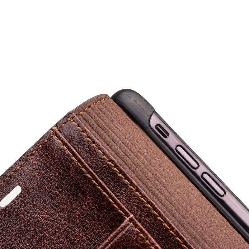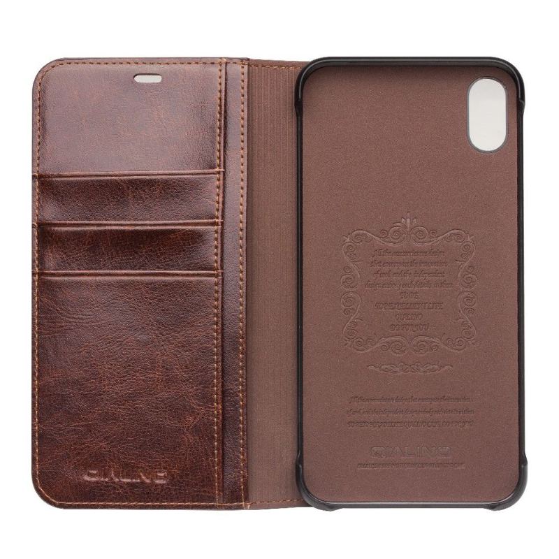 Slå in din iPhone XS Max i ett kvalitetsfodral för att skydda den med detta korthållarfodral i äkta läder.