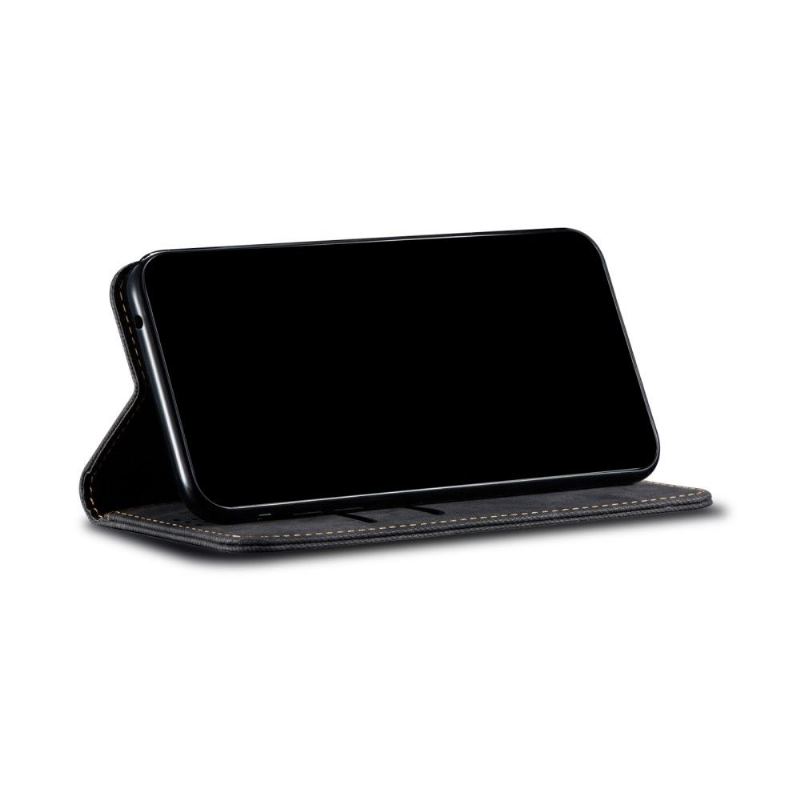 Dess imiterade jeansliknande läderfodral ger din mobil mycket stil och skyddar den effektivt från stötar av alla slag.