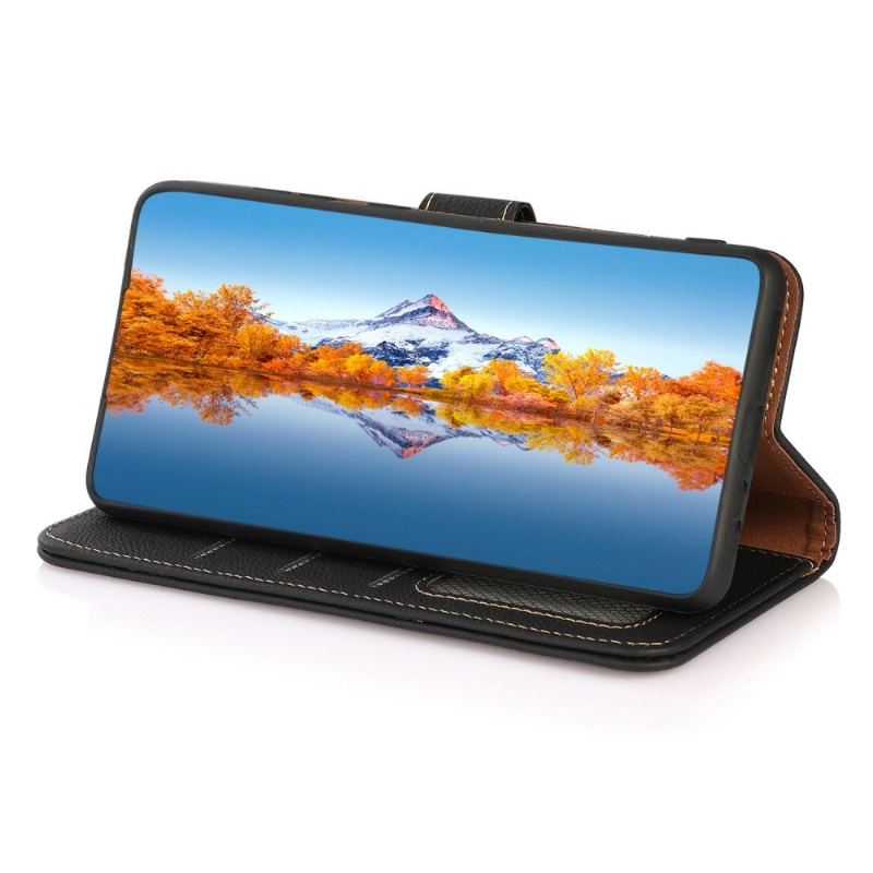 Det klassiska KHAZNEH-läderfodralet gör att din Realme C35 förblir intakt under alla omständigheter trots dagliga skador.