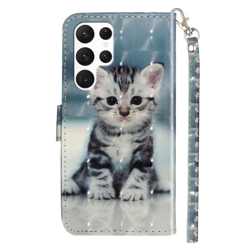 Ge Din Samsung Galaxy S24 Ultra 5G Ett Elegant Utseende Med Vårt Flip-Fodral Med 3D-Printad Design Av En Söt Kattunge.