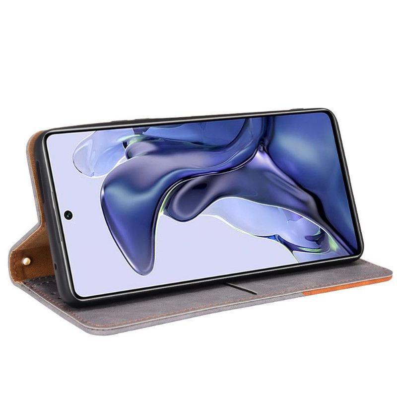 - Fodral designad i tvåfärgad retrodesign i konstläder för Xiaomi 11T / 11T Pro