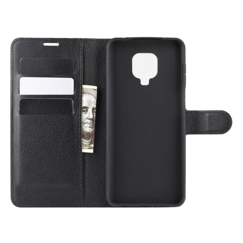 Höljet i läderstil skyddar hela Xiaomi Redmi Note 9 Pro / Note 9S samtidigt som det är en plånbok och stativ för handsfree-användning.
