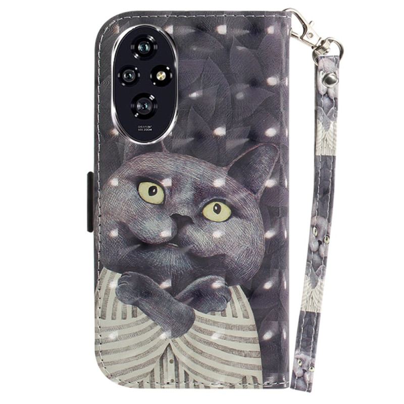 Kolla In Vårt Honor 200 5G-Fodral Med Ett Grått Kattmönster.