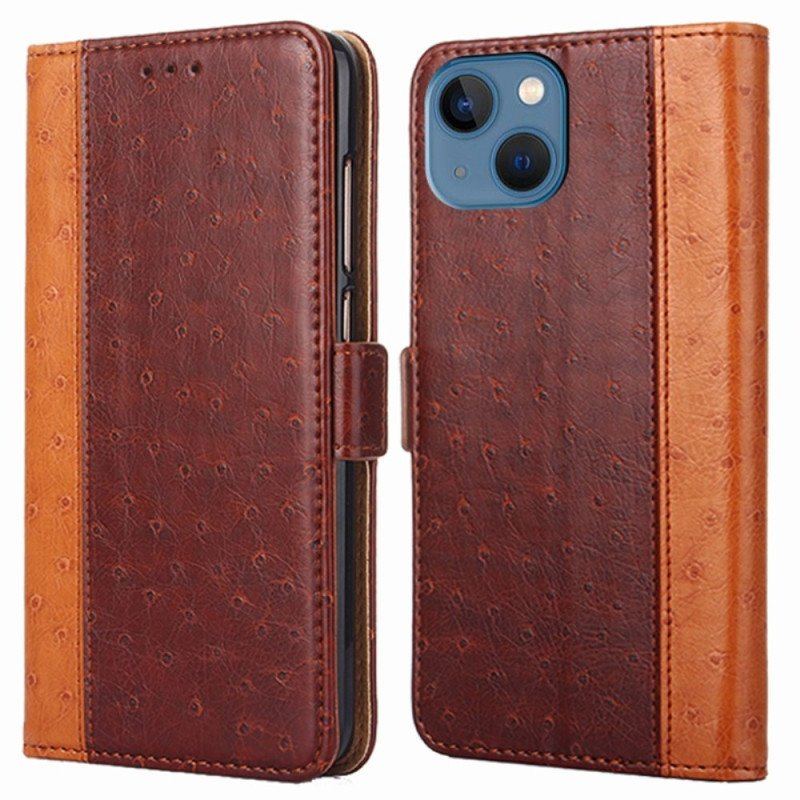 Din Iphone 14 Är Väldigt Original Med Detta Skal I Tvåfärgat Konstläder Med Strutsskinnsstruktur.