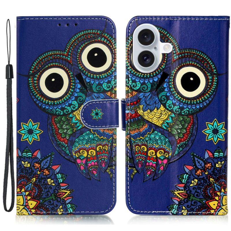Kolla In Vårt Iphone 16-Fodral, Med Korthållare Och Blått Uggle-Tryck.