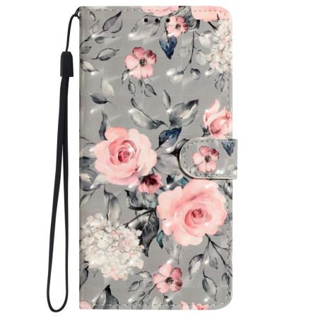 Fodral iPhone 16 Pro Rosa Blommor På Grå Bakgrund Med Rem