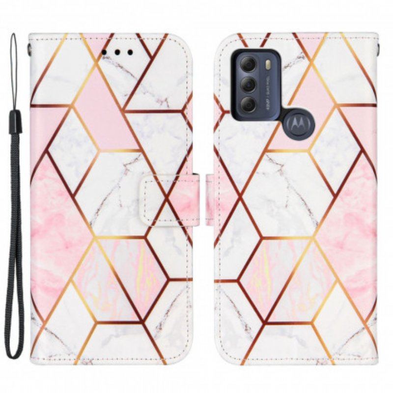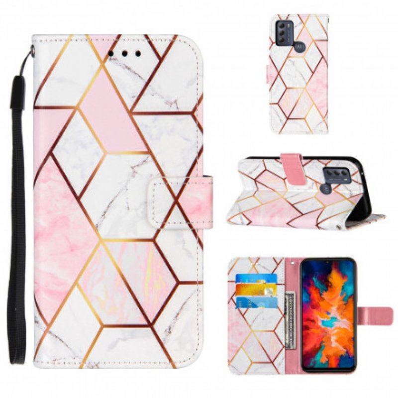 Öka Säkerheten För Din Moto G50 Med Detta Geometric Marble-Fodral Som Även Fungerar Som Plånbok Och Handsfreehållare.