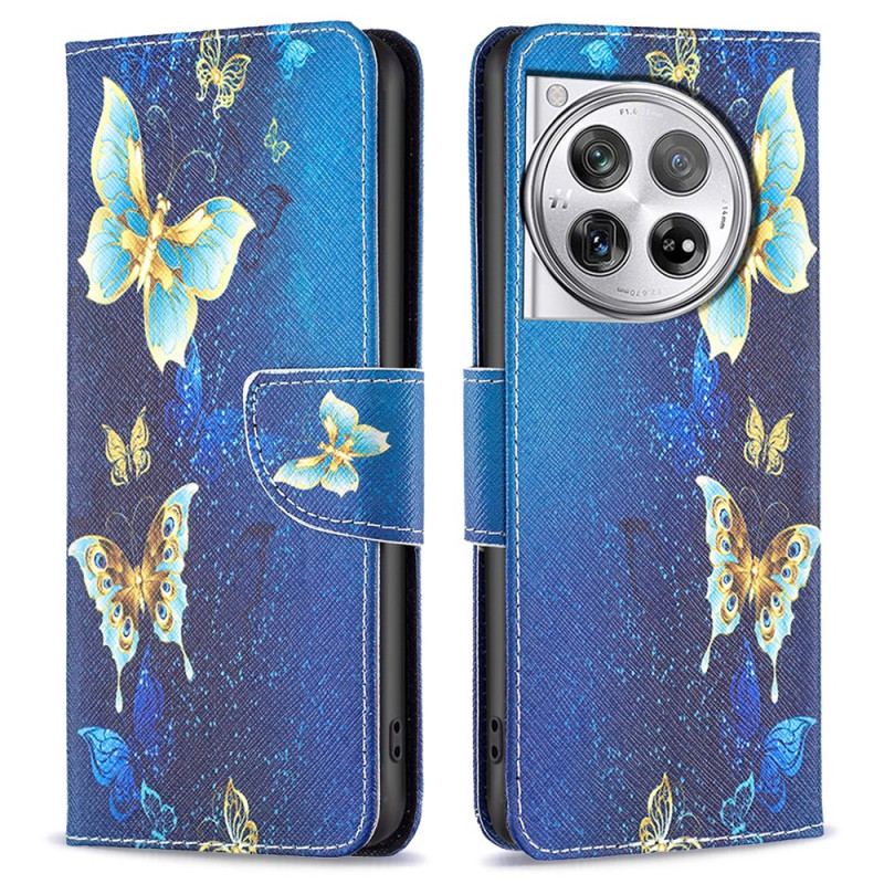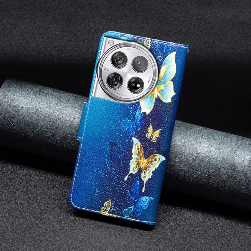 Fodral Oneplus 12 5g Gyllene Fjärilar På Blå Bakgrund