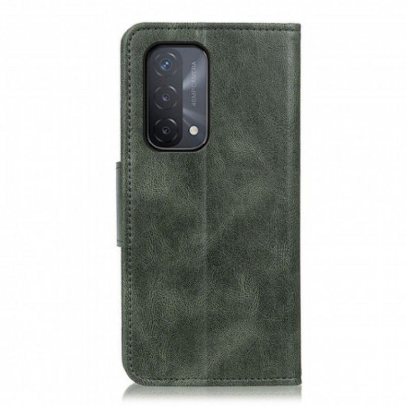 Skydda Din Oppo A54 5G / A74 5G Exceptionellt Bra Med Detta Fodral I Konstläder Med Sitt Mycket Praktiska Och Snygga Vändbara Spänne.