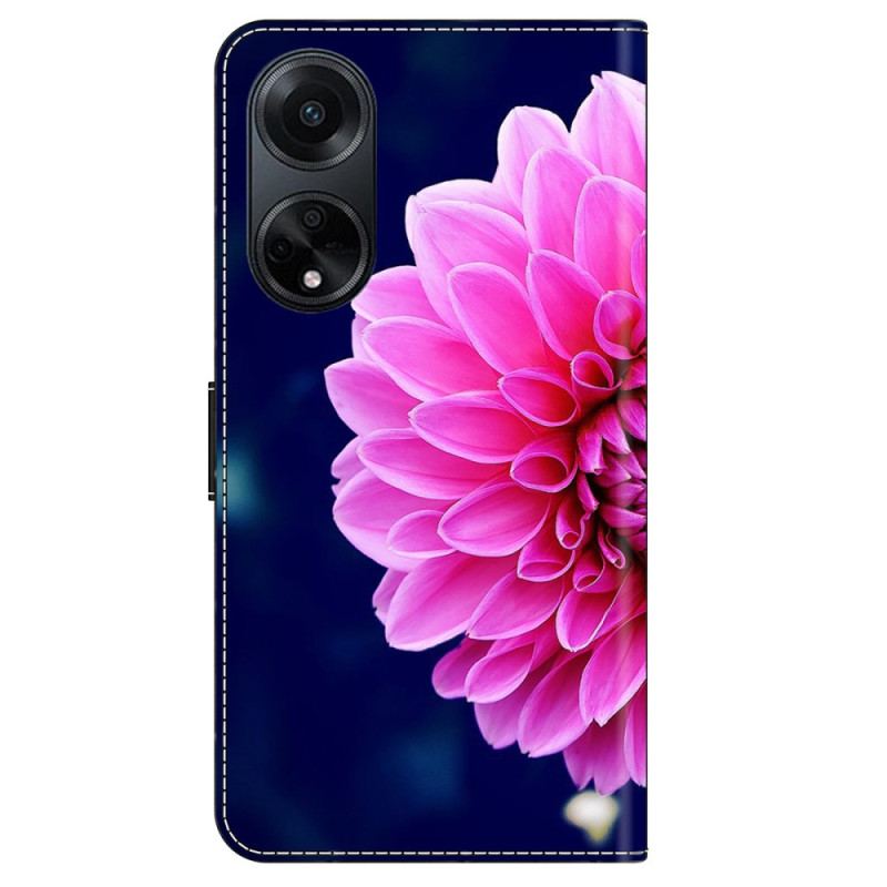Fodral Oppo A98 5g Rosa Blommor På Blå Bakgrund