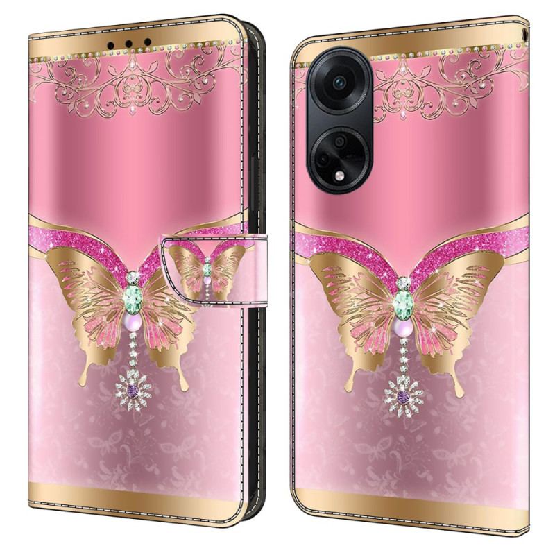 Fodral Oppo A98 5g Rosa Och Guldfjäril