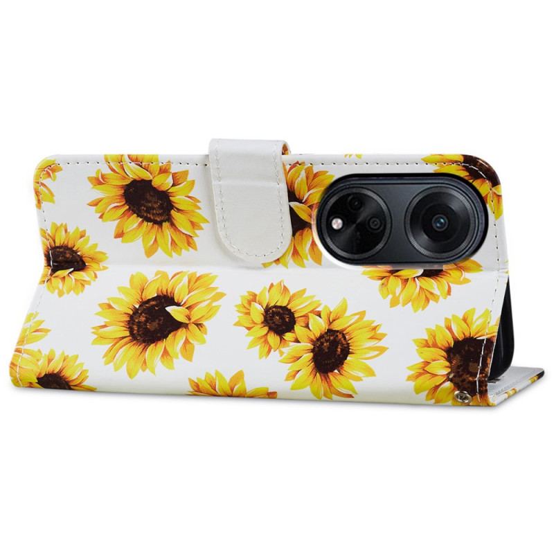 Upptäck Vårt Eleganta Magnetiska Fodral För Oppo A98 5G, Dekorerat Med Ett Solrosmotiv.