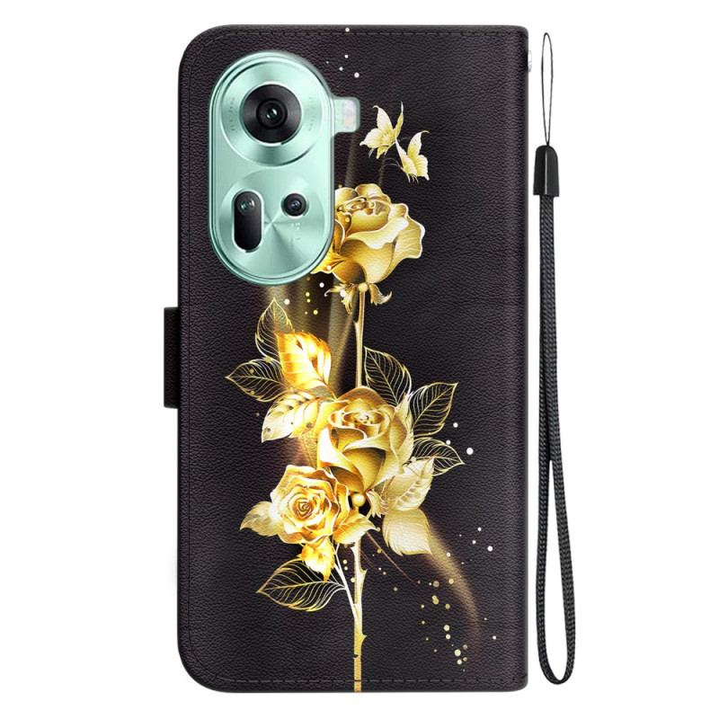 Fodral Oppo Reno 11 5g Guld Och Rosa Fjärilar Med Rem