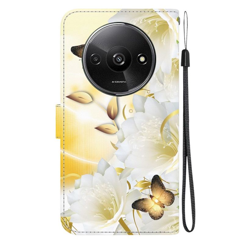 Fodral Poco C61 Guld Och Vita Fjärilar Med Rem