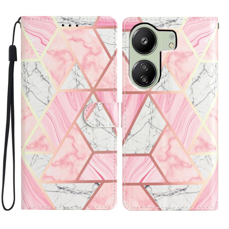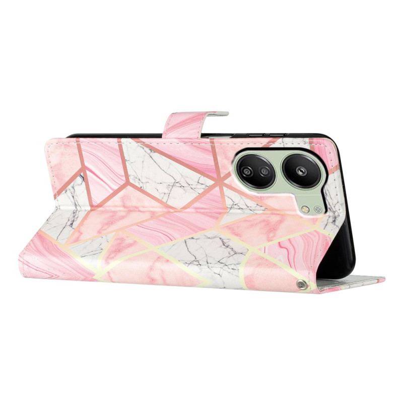 Kolla In Vårt Eleganta Rosa Marmorfodral För Xiaomi Redmi 13C / Poco C65 Som Levereras Med En Rem.