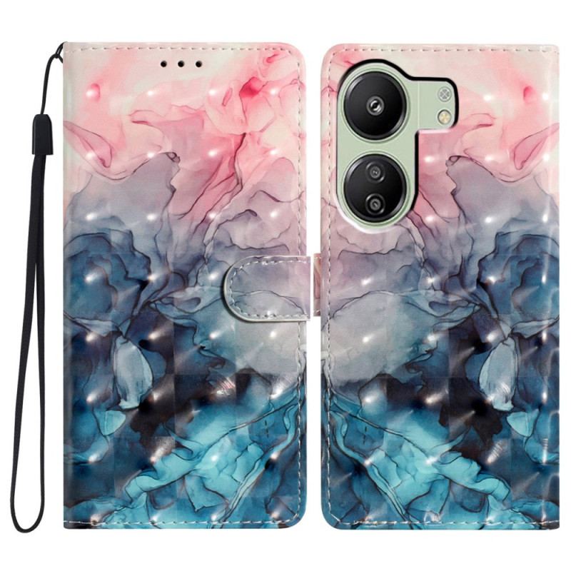 Ett Snyggt Fodral För Xiaomi Redmi 13C / Poco C65. Dekorerat Med Ett Rosa Och Blått Marmorerat 3D-Mönster.
