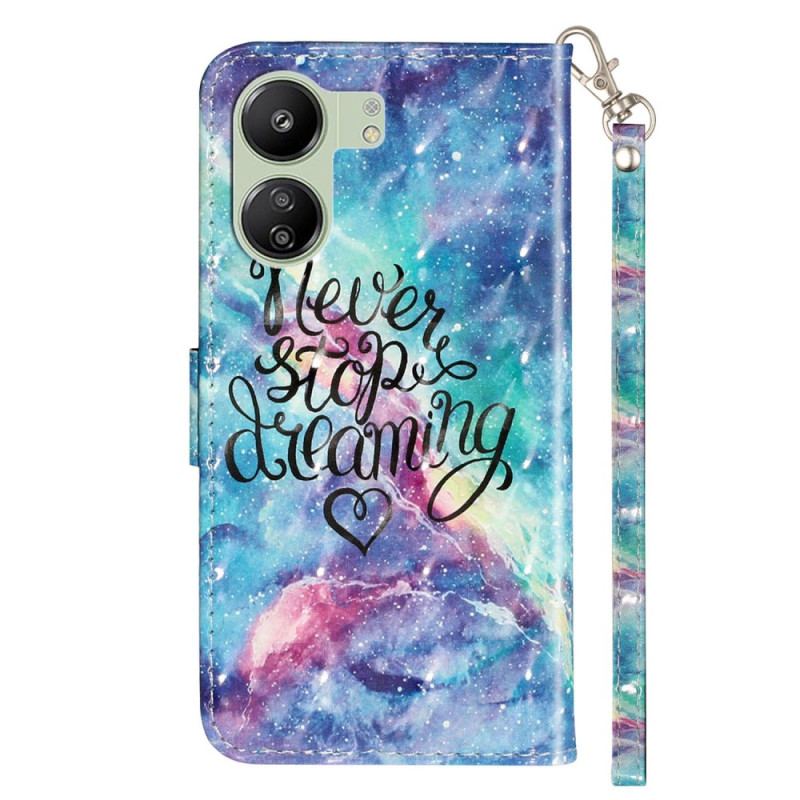 Kolla In Vårt Plånboksfodral För Xiaomi Redmi 13C 4G/5G/Poco C65. Dekorerat Med Ett Snyggt 3D-Mönster Av Stjärnhimlen Never Stop Dreaming.
