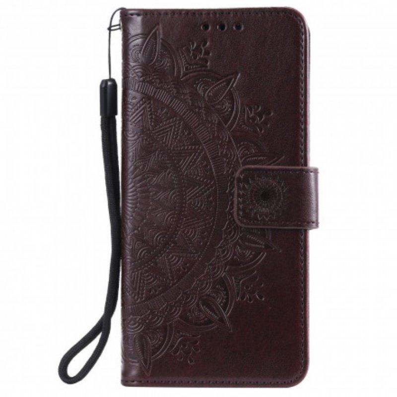 Ett Magnifikt Fodral Till Xiaomi Redmi Note 10/Note 10S/Poco M5S Med En Mandala-Design Av En Sun Som Också Fungerar Som En Plånbok Och Stativ Tillsammans Med En Rem.