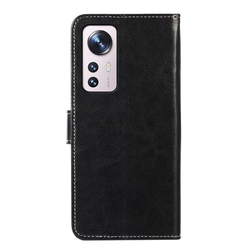 Skydda Din Xiaomi 12 / 12X Med Detta Fodral Med Synliga Sömmar Som Fungerar Som En Plånbok.