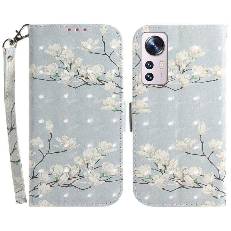 Din Xiaomi 12 / 12X Är Perfekt Skyddad Med Detta Fodral Dekorerat Med Vita Blommor Som Har En Fästad Rem.