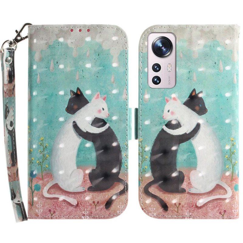 Fodral Xiaomi 12 / 12X Med Kedjar Svart Katt Vit Katt Med Rem