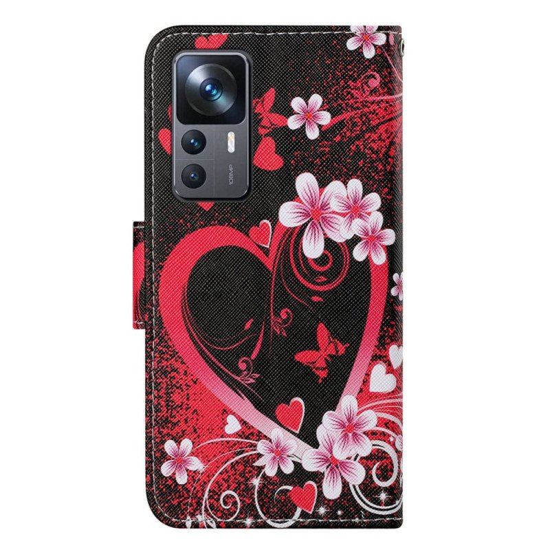 Fodral Xiaomi 12T / 12T Pro Blommor Och Hjärtan Med Snodd