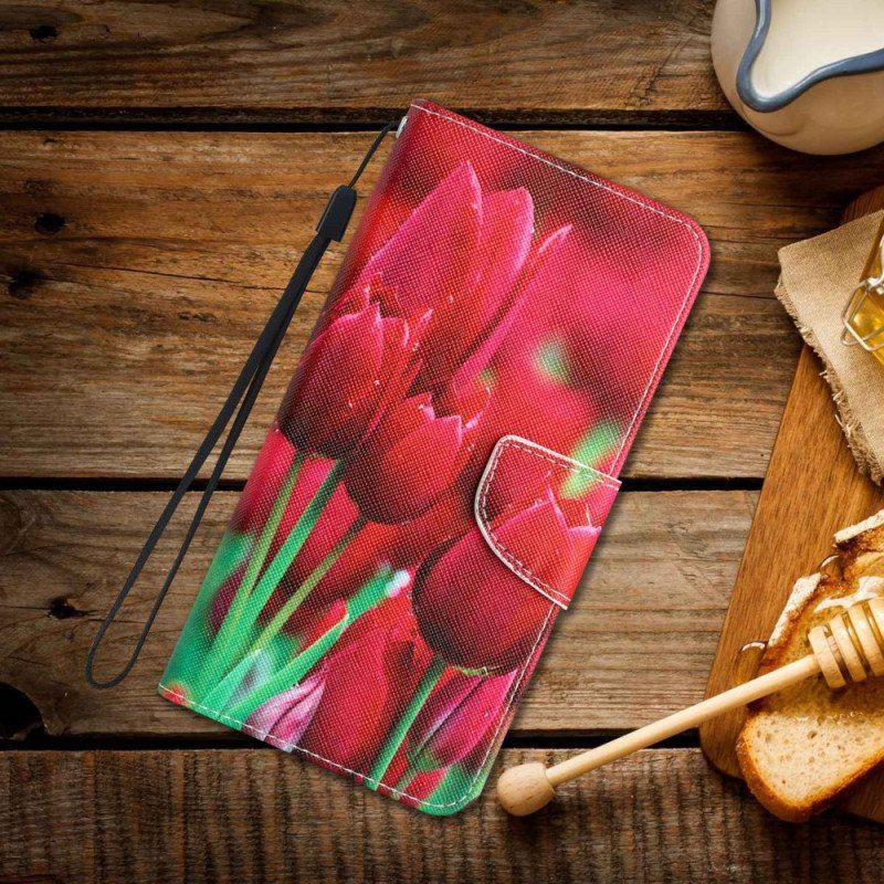 Säkra Din Xiaomi 12T / 12T Pro Med Det Här Fodralet Dekorerat Med Tulpaner Som Kommer Med En Rem.