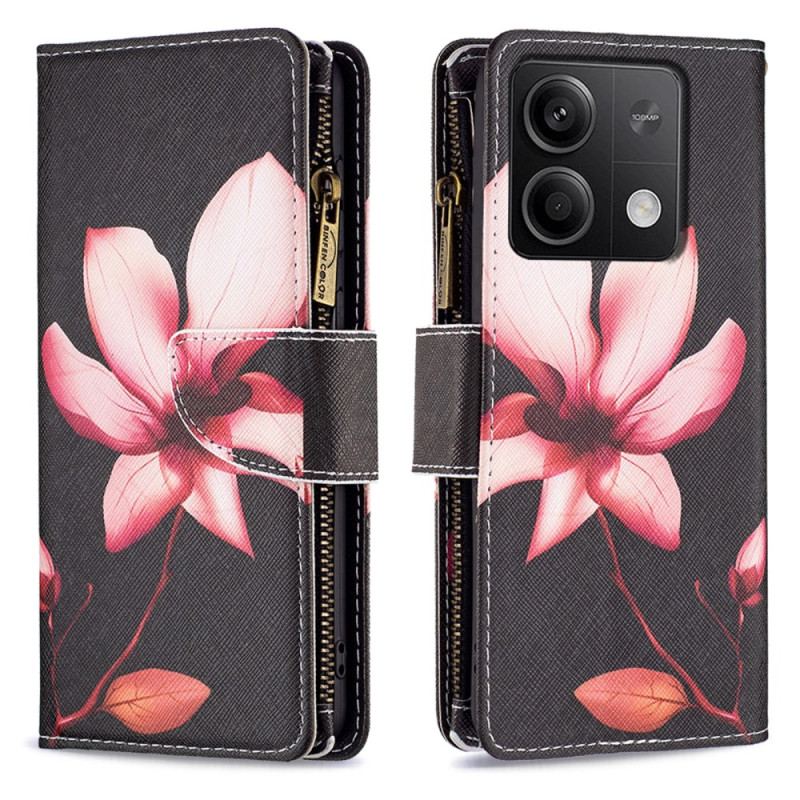 Kolla In Vårt Plånboksfodral För Xiaomi Redmi Note 13 4G, Med En Unik Tryckt Lotusdesign.