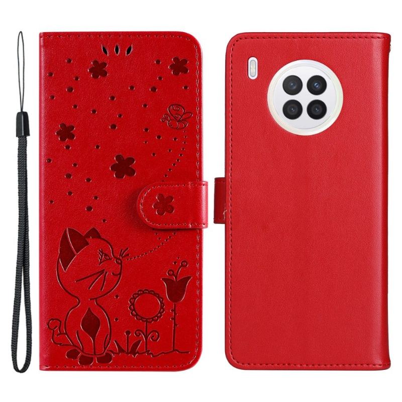 Folio-fodral För Huawei Nova 8i / Honor 50 Lite Fallskydd Kattillustration