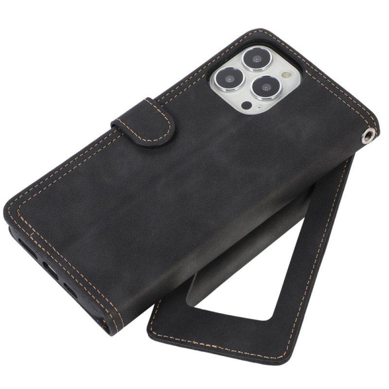 Skydda Din Iphone 14 Pro Max Med Detta Flip-Fodral Utrustat Med En Spegel Framficka Och En Rem.