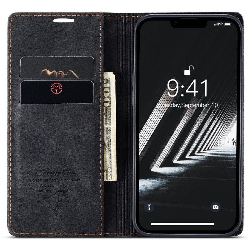 Folio-fodral iPhone 15 Läderfodral Vintage Konstläder Caseme