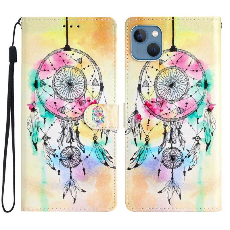 Folio-fodral iPhone 15 Med Kedjar Akvarelldrömfångare Med Rem