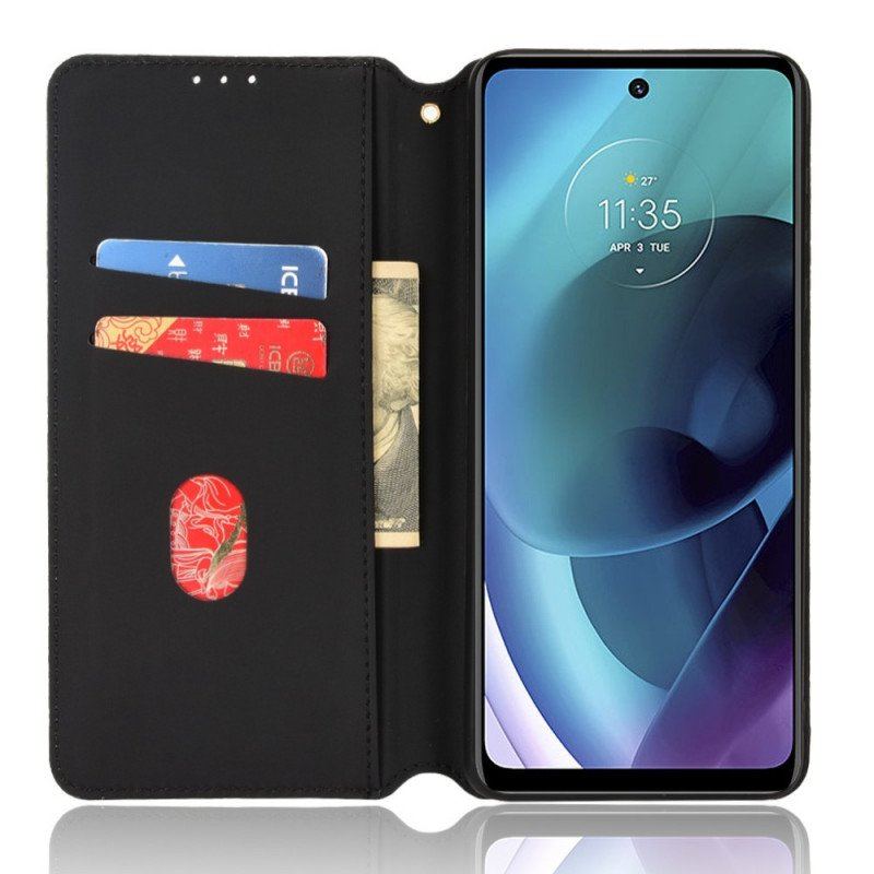 Din Moto G51 5G Ser Fantastisk Ut Med Det Diamantstrukturerade Flip-Fodralet I Konstläder Som Elegant Säkrar Den Bärbara Datorn.