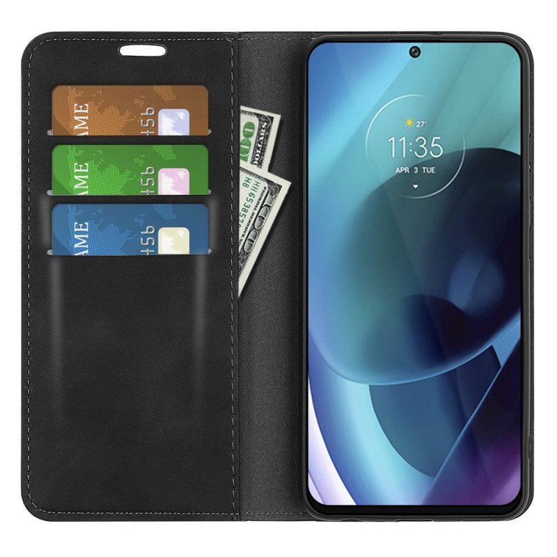 Skydda Din Moto G71 5G På Ett Smalt Och Hållbart Sätt Med Denna Silkeslena Lädereffekt Flip Cover-Stil (Med Integrerat Lås).