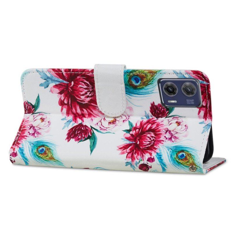 Folio-fodral Moto G73 5G Med Kedjar Strappy Blommig
