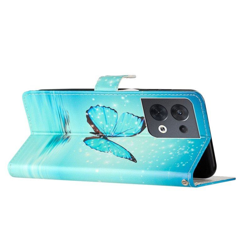 Folio-fodral Oppo Reno 8 Med Kedjar Blå Fjärilar Med Rem