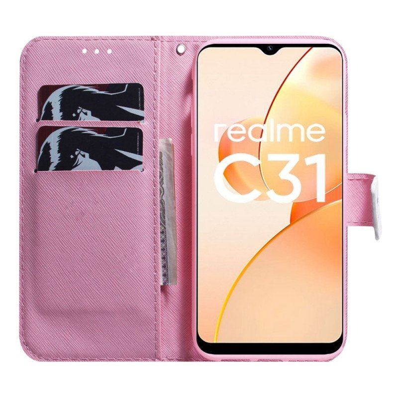 Detta Fodral I Konstläder Med En Rosa Blomma Skyddar Din Realme C31 Mot Dagliga Skador.