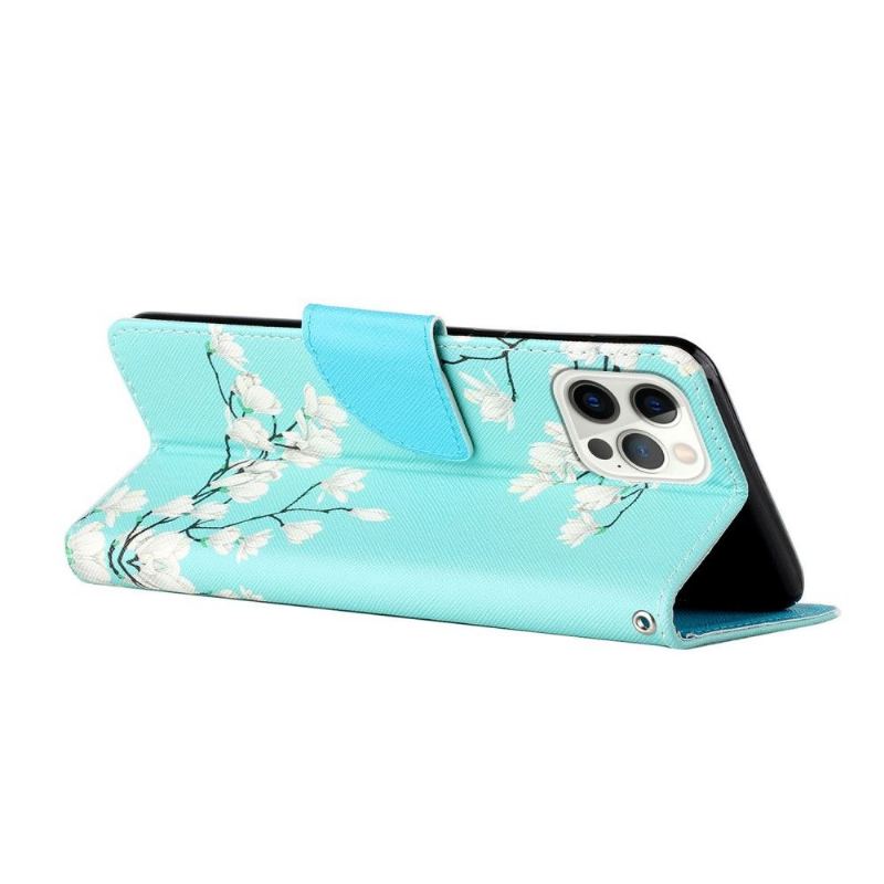 Läderfodral För iPhone 13 Pro Vita Blommor