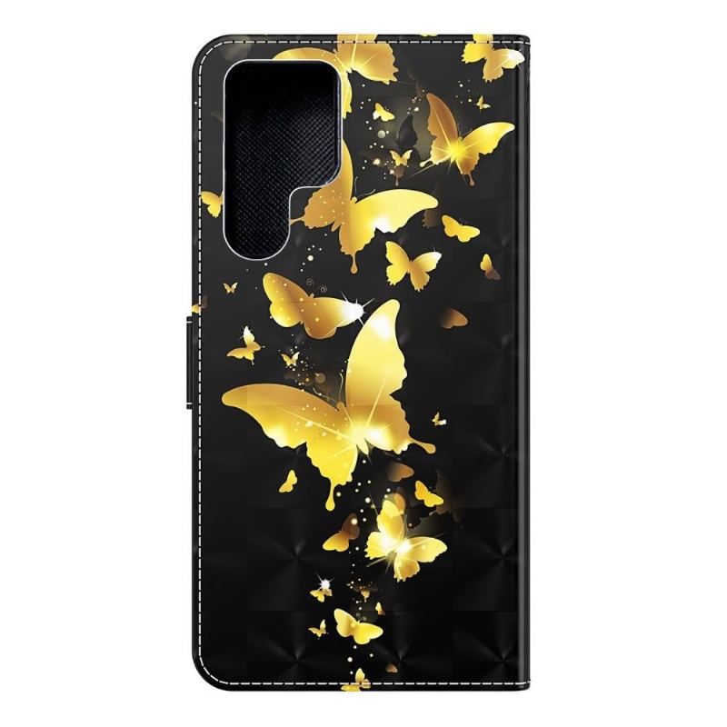 - Guld fjärilar i konstläderfodral till Samsung Galaxy S22 Ultra 5G