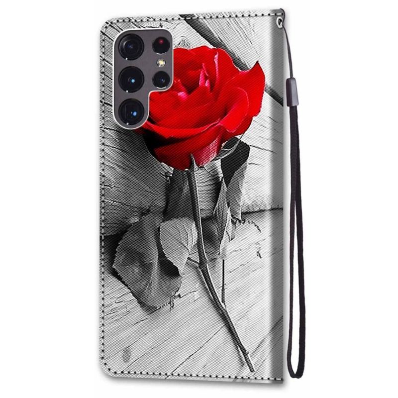 Läderfodral För Samsung Galaxy S22 Ultra 5G Rosenröd