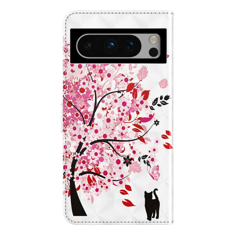 Läderfodral Google Pixel 8 Telefonfodral Rött Träd Med Rem