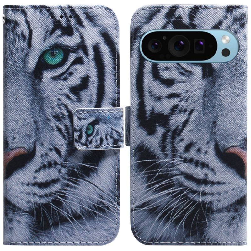 Läderfodral Google Pixel 9 Telefonfodral White Tiger