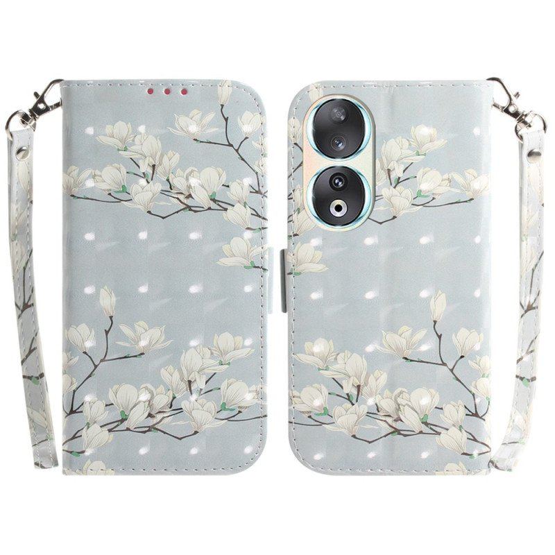 Läderfodral Honor 90 Med Kedjar Vita Blommor Med Rem