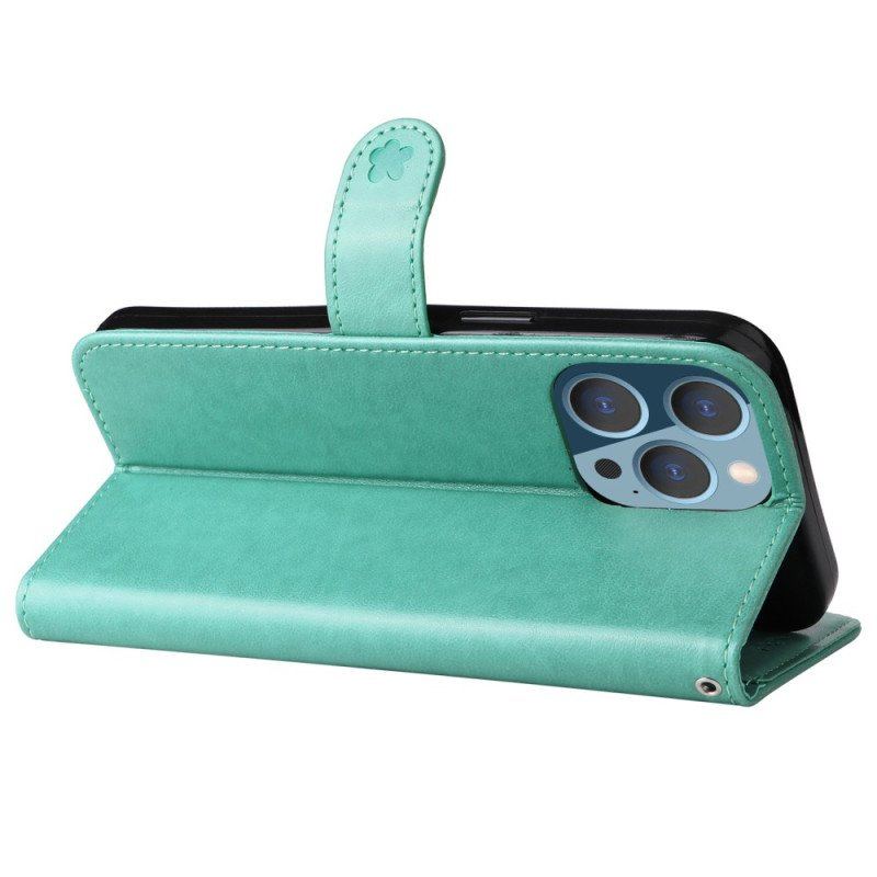 Läderfodral iPhone 14 Pro Max Med Kedjar Strappy Cat And Bees