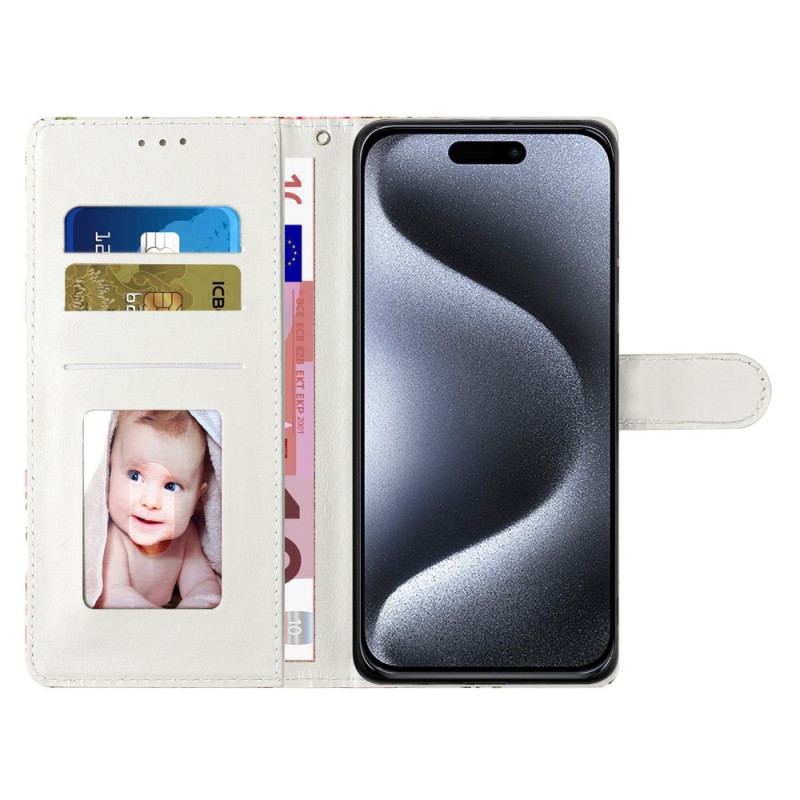 Läderfodral iPhone 16 Pro Max Telefonfodral Röda Blommor Med Rem