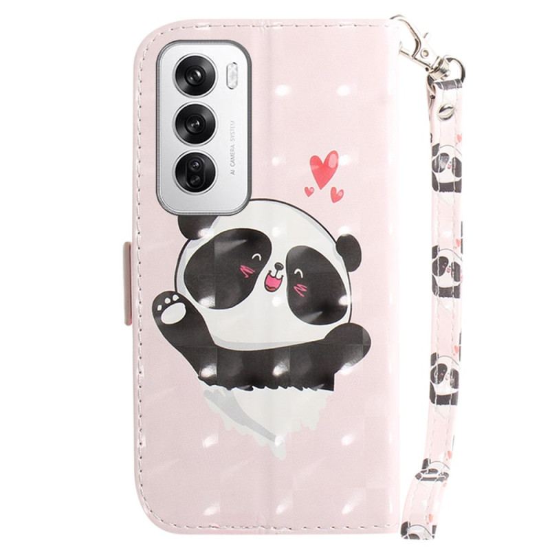Läderfodral Oppo Reno 12 5g Telefonfodral Panda Love Med Rem