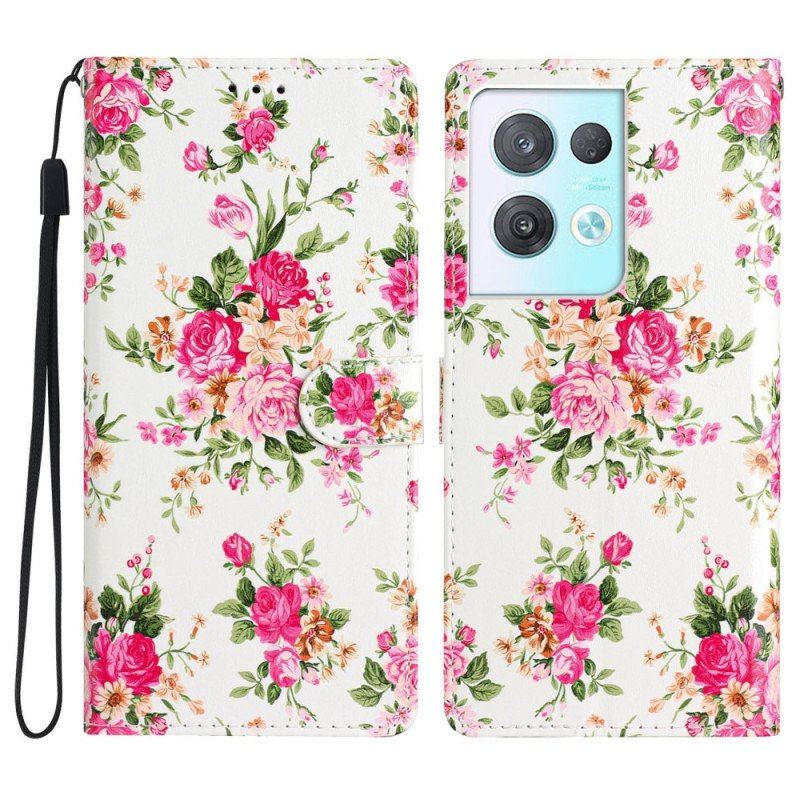 Läderfodral Oppo Reno 8 Pro Med Kedjar Rem Liberty Flowers