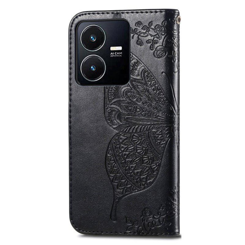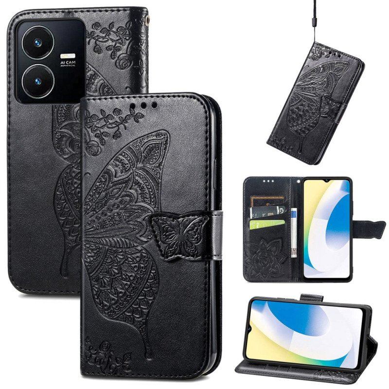 Skydda Dina Vivo Y35 / Y22S På Ett Konstnärligt Sätt Med Detta Baroque Butterfly Läderfodral.