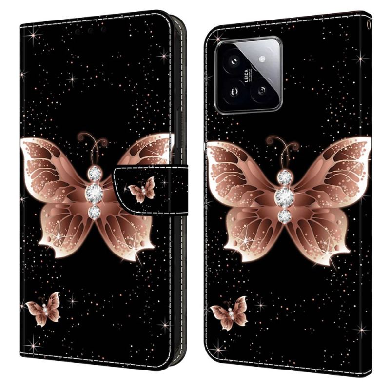 Läderfodral Xiaomi 14 Telefonfodral Rosa Diamantfjäril
