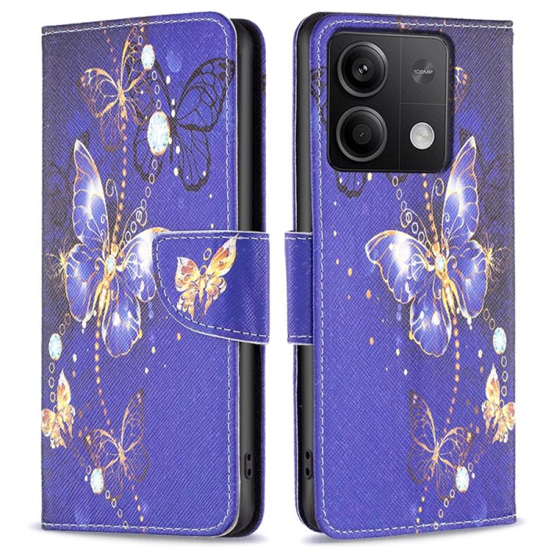 Läderfodral Xiaomi Redmi Note 13 5g Telefonfodral Lila Fjärilar